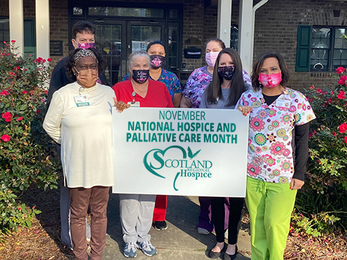 LAURINBURG – Throughout the month of November, Scotland Regional Hospice will be joining organizations across the nation in celebrating National Hospice and Palliative Care Month to honor the millions of physicians, nurses, home care aides, therapists, social workers, and chaplains who make a remarkable difference for the patients and families they serve. The hospice staff and volunteers hope to use the month-long celebration to educate and encourage citizens to increase their understanding and awareness of personalized care at the end of life.